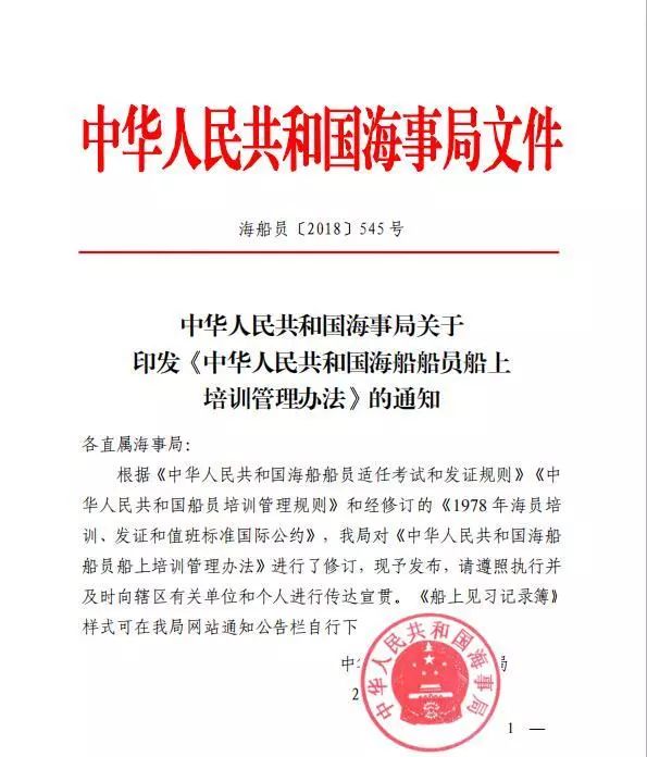 各直屬海事局: 根據(jù)《中華人民共和國海船船員適任考試和發(fā)證規(guī)則》《中華人民共和國船員培訓(xùn)管理規(guī)則》和經(jīng)修訂的《1978 年海員培訓(xùn)、發(fā)證和值班標(biāo)準(zhǔn)國際公約》,我局對《中華人民共和國海船船員船上培訓(xùn)管理辦法》進行了修訂,現(xiàn)予發(fā)布,請遵照執(zhí)行并及時向轄區(qū)有關(guān)單位和個人進行傳達宣貫?!洞弦娏?xí)記錄簿》樣式可在我局網(wǎng)站通知公告欄自行下載。